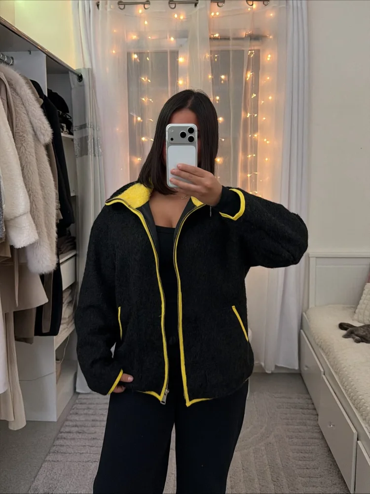 Cardigan en Tricot Élégant à Manches Longues avec Poches et Zip